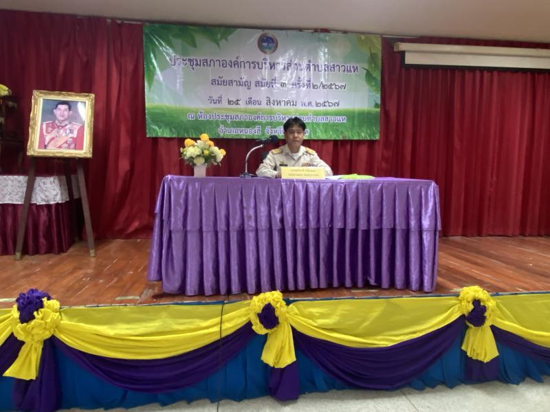 วันที่ 25 สิงหาคม 2567 เวลา 09.30น.-12.00น. ประชุมสภาองค์การบริหารส่วนตำบลสาวแห สมัยสามัญที่ 3 ครั้งที่ 2 ประจำปี 2567 เรื่องเพื่อการพิจารณาข้อบัญญัติงบประมาณรายจ่าย ประจำปี 2568 วาระที่ 2 และเรื่องอื่นๆ ณ ห้องประชุมสภาองค์การบริหารส่วนตำบลสาวแห อ.หนองฮี จ.ร้อยเอ็ด