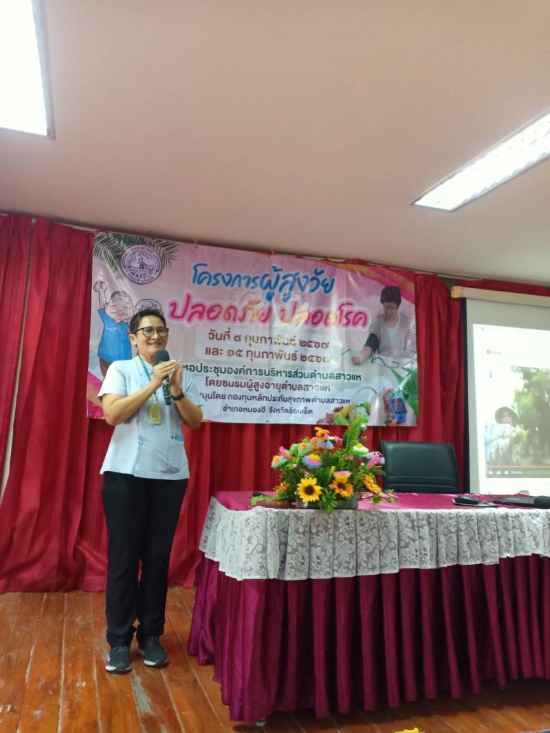 วันที่ 22 กุมภาพันธ์ 2567 เวลา 09.30 น. กองสวัสดิการสังคม องค์การบริหารส่วนตำบลสาวแห จัดกิจกรรมโรงเรียนผู้สูงอายุ วิทยากรโดย คุณหมอชื่นนภา ธรรมวิเศษ จากโรงพยาบาลหนองฮี ณ ห้องประชุมองค์การบริหารส่วนตำบลสาวแห