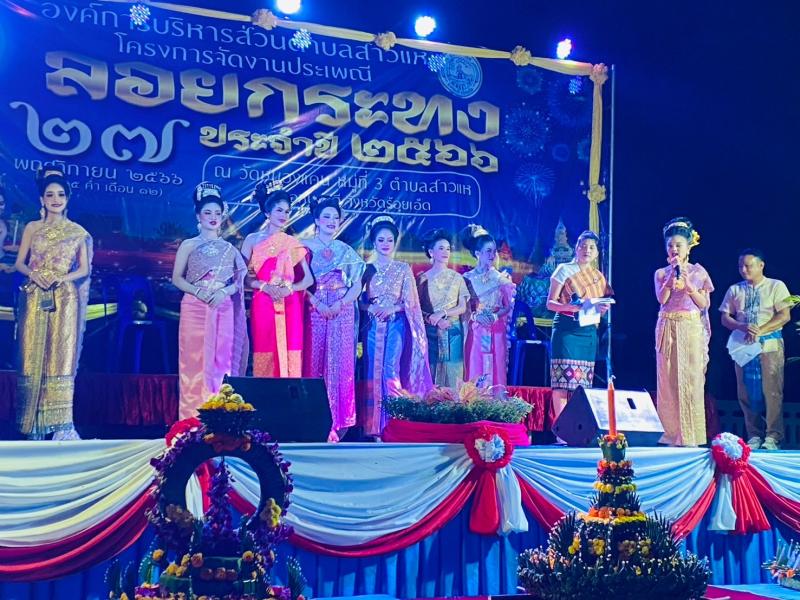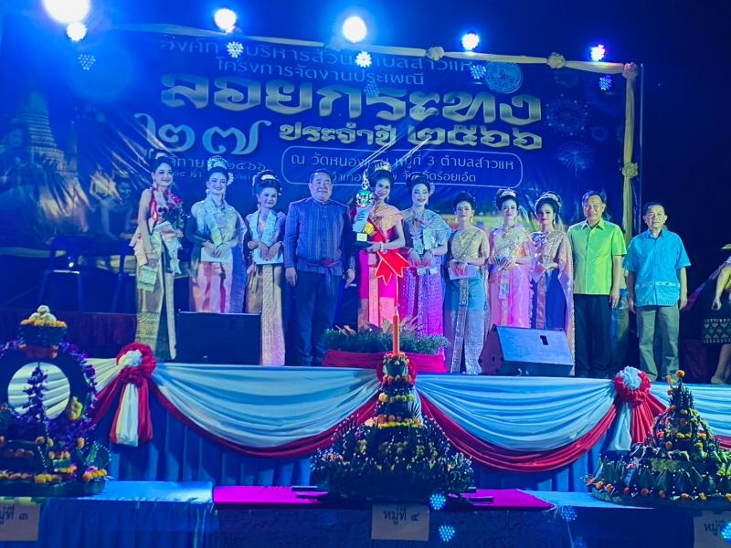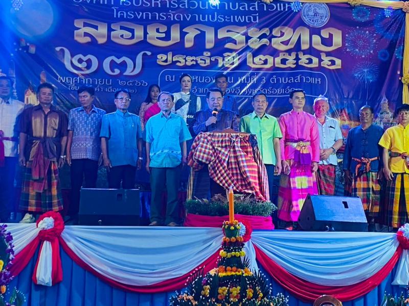 วันที่ 27 พ.ย. 2566 เวลา 18.30 น. นายชนะชาญ ศรีปัญญา นายก อบต.สาวแห เป็นประธานเปิดโครงการจัดงานประเพณีวันลอยกระทง ประจำปีงบประมาณ พ.ศ.2567 โดยมีนายปฏิการ เชื้อทอง รองปลัด อบต.สาวแห เป็นผู้กล่าวรายงานเปิดโครงการ พร้อมกับหัวหน้าส่วนราชการ,พนักงานส่วนตำบล,ผู้นำหมู่บ้าน และประชาชนชาวตำบลสาวแห เพื่อให้ประชาชนได้มาร่วมกิจกรรมงานวันลอยกระทง และรับชมการแสดงพลุไฟ พร้อมกับกิจกรรมอื่น ๆ เพื่อความสัมพันธ์ที่ดีของพี่น้องชาวไทยและอนุรักษ์สืบสานประเพณีลอยกระทงให้คงอยู่สืบไป ณ วัดบ้านหนองแคน หมู่ที่ 3 ตำบลสาวแห อำเภอหนองฮี จังหวัดร้อยเอ็ด