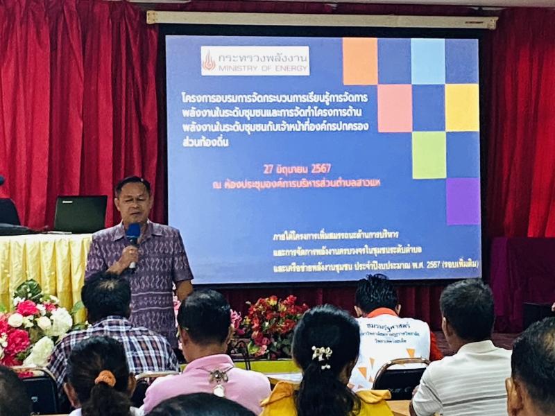 วันที่ 27 มิถุนายน 2567 เวลา 09.30น. นายชนะชาญ ศรีปัญญา นายก อบต.สาวแห เป็นประธานเปิดโครงการอบรมการจัดกระบวนการเรียนรู้การจัดการพลังงานในระดับชุมชนและการจัดทำโครงการด้านพลังงานในระดับชุมชนกับเจ้าหน้าที่องค์กรปกครองส่วนท้องถิ่น ภายใต้โครงการเพิ่มสมรรถนะด้านการบริหารและจัดการพลังครบวงจรในชุมชนระดับตำบลและเครือข่ายพลังงานชุมชน ประจำปีงบประมาณ 2567 (รอบเพิ่มเติม) และลงนาม MOU ระหว่าง สพจ.รอ. และ อปท. ณ ห้องประชุมองค์การบริหารส่วนตำบลสาวแห