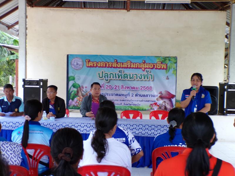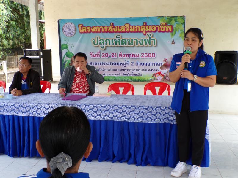 วันที่ 20 สิงหาคม 2568 เวลา 09.30 น. นายชนะชาญ ศรีปัญญา นายก อบต.สาวแห เป็นประธานเปิดโครงการส่งเสริมกลุ่มอาชีพปลูกเห็ดนางฟ้าประจำปีงบประมาณ พ.ศ.2568 โดยกองสวัสดิการสังคมองค์การบริหารส่วนตำบลสาวแห ณ ศาลาประชาคม หมู่ที่ 2 ตำบลสาวแห อำเภอหนองฮี จังหวัดร้อยเอ็ด