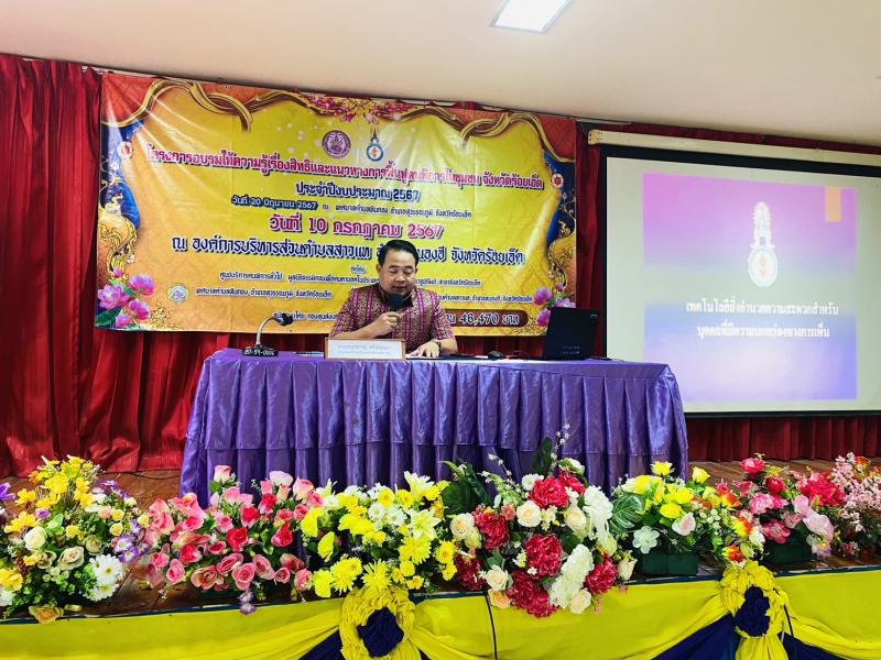 วันที่ 10 กรกฎาคม 2567 เวลา 9.00 น. นายชนะชาญ ศรีปัญญา นายกองค์การบริหารส่วนตำบลสาวแห เป็นประธานในพิธีเปิด โครงการอบรมให้ความรู้เรื่องสิทธิและแนวทางการฟื้นฟูคนพิการในชุมชนจังหวัดร้อยเอ็ด ประจำปีงบประมาณ 2567 ณ ห้องประชุมองค์การบริหารส่วนตำบลสาวแห และเป็นวิทยากรบรรยายถึงแนวทางการให้บริการ คนพิการในชุมชนในตำบลสาวแห จัดโดยโดยมูลนิธิธรรมิกชนเพื่อคนตาบอดในประเทศไทยในพระบรมราชูปถัมภ์ สาขาจังหวัดร้อยเอ็ด ร่วมกับกองสวัสดิการสังคม องค์การบริหารส่วนตำบลสาวแห