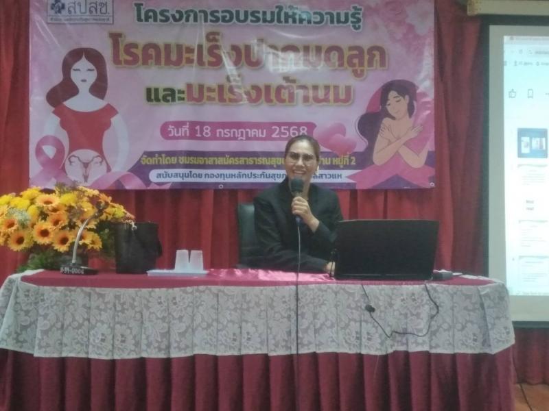 วันที่ 18 กรกฎาคม 2568 นายชนะชาญ ศรีปัญญา นายก อบต.สาวแห เป็นประธานเปิดโครงการอบรมให้ความรู้โรคมะเร็งปากมดลูกและมะเร็งเต้านม ณ ห้องประชุมองค์การบริการส่วนตำบลสาวแห จัดทำโดยชมรมอาสาสมัครสาธารณสุข หมู่ที่ 2 ตำบลสาวแห อำเภอหนองฮี จังหวัดร้อยเอ็ด สนับสนุนโดยกองทุนหลักประกันสุขภาพตำบลสาวแห