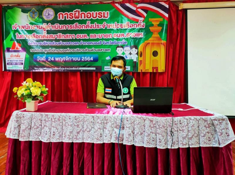 วันที่ 24 พ.ย.64 เวลา 09.00 น. ว่าที่ร้อยตรี ประสิทธิ์ ฉ่ำมณี นายอำเภอหนองฮี เป็นประธานพิธีเปิดโครงการอบรมเจ้าพนักงานผู้ดำเนินการเลือกตั้งประจำหน่วยเลือกตั้ง(กปน.)ในการเลือกตั้งสมาชิกสภาองค์การบริหารส่วนตำบลสาวแห และนายกองค์การบริหารส่วนตำบลสาวแห และซักซ้อมการปฏิบัติงานของเจ้าพนักงานผู้ดำเนินการเลือกตั้ง (กปน.) ณ หอประชุมองค์การบริหารส่วนตำบลสาวแห