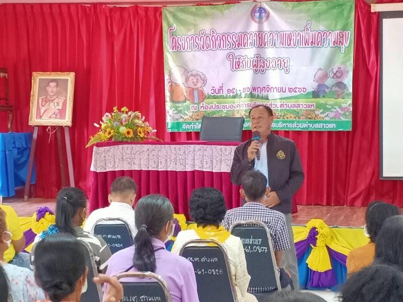 วันนี้ 15 พฤศจิกายน 2566 เวลา 09.00 น. นายชนะชาญ ศรีปัญญา นายนายก อบต.สาวแห มอบหมายให้ นางสาวปภัสรัญชน์ บุญชม รองนายก อบต.สาวแห เป็นประธานเปิดโครงการจัดกิจกรรมคลายความเหงาเพิ่มความสุขให้กับผู้สูงอายุ ประจำปีงบประมาณ พ.ศ.2567 โดยกองสวัสดิการสังคม ณ ห้องประชุมองค์การบริหารส่วนตำบลสาวแห ตำบลสาวแห อำเภอหนองฮี จังหวัดร้อยเอ็ด