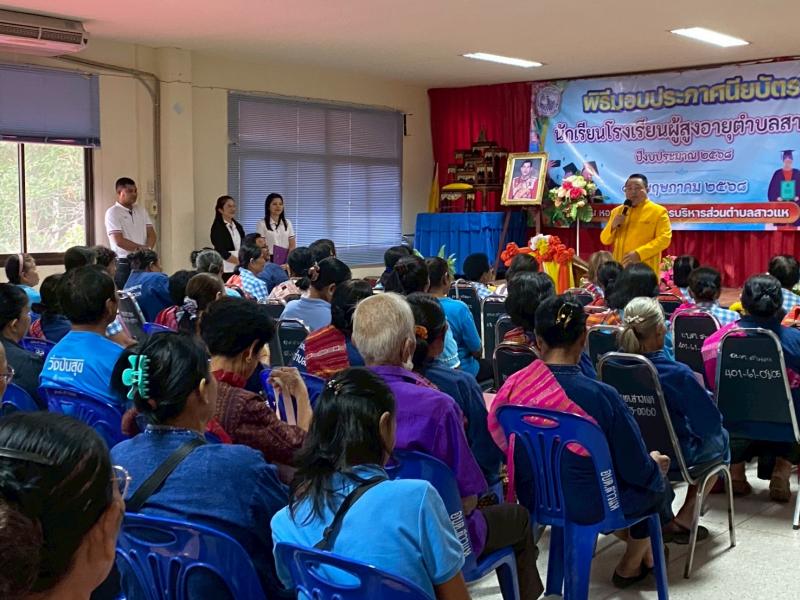วันที่ 13 พฤษภาคม 2568 เวลา 09.00 น. องค์การบริหารส่วนตำบลสาวแห นำโดยนายชนะชาญ ศรีปัญญา นายก อบต.สาวแห เป็นประธานในพิธีมอบประกาศนียบัตร นักเรียนผู้สูงอายุตำบลสาวแห ประจำปีงบประมาณ พ.ศ.2568 ณ ห้องประชุมองค์การบริหารส่วนตำบลสาวแห