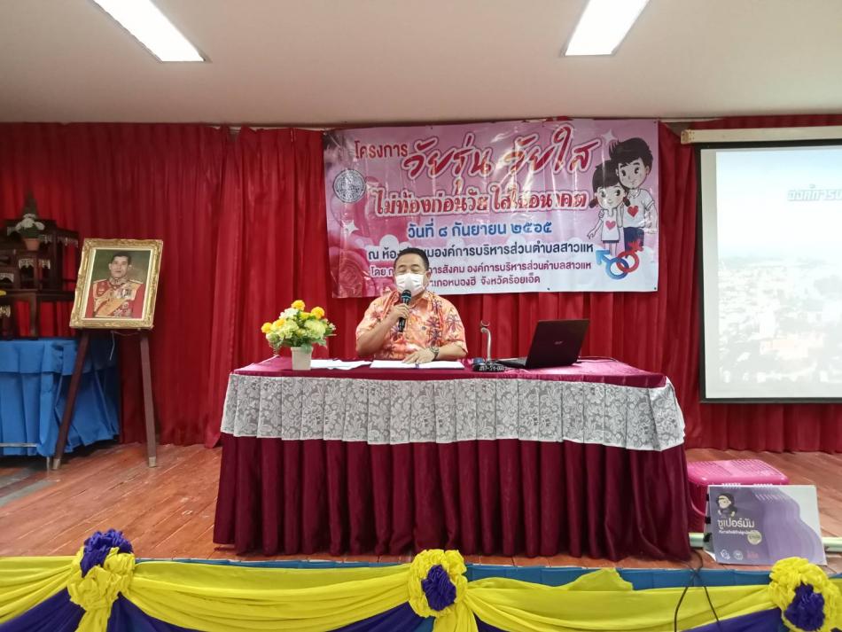 วันที่ 8 ก.ย. 65 นายชนะชาญ ศรีปัญญา นายก อบต.สาวแห เป็นประธานเปิดโครงการวัยรุ่น วัยใส ไม่ท้องก่อนวัย ใส่ใจอนาคต ณ ห้องประชุมสภาองค์การบริหารส่วนตำบลสาวแห [8 กันยายน 2565]