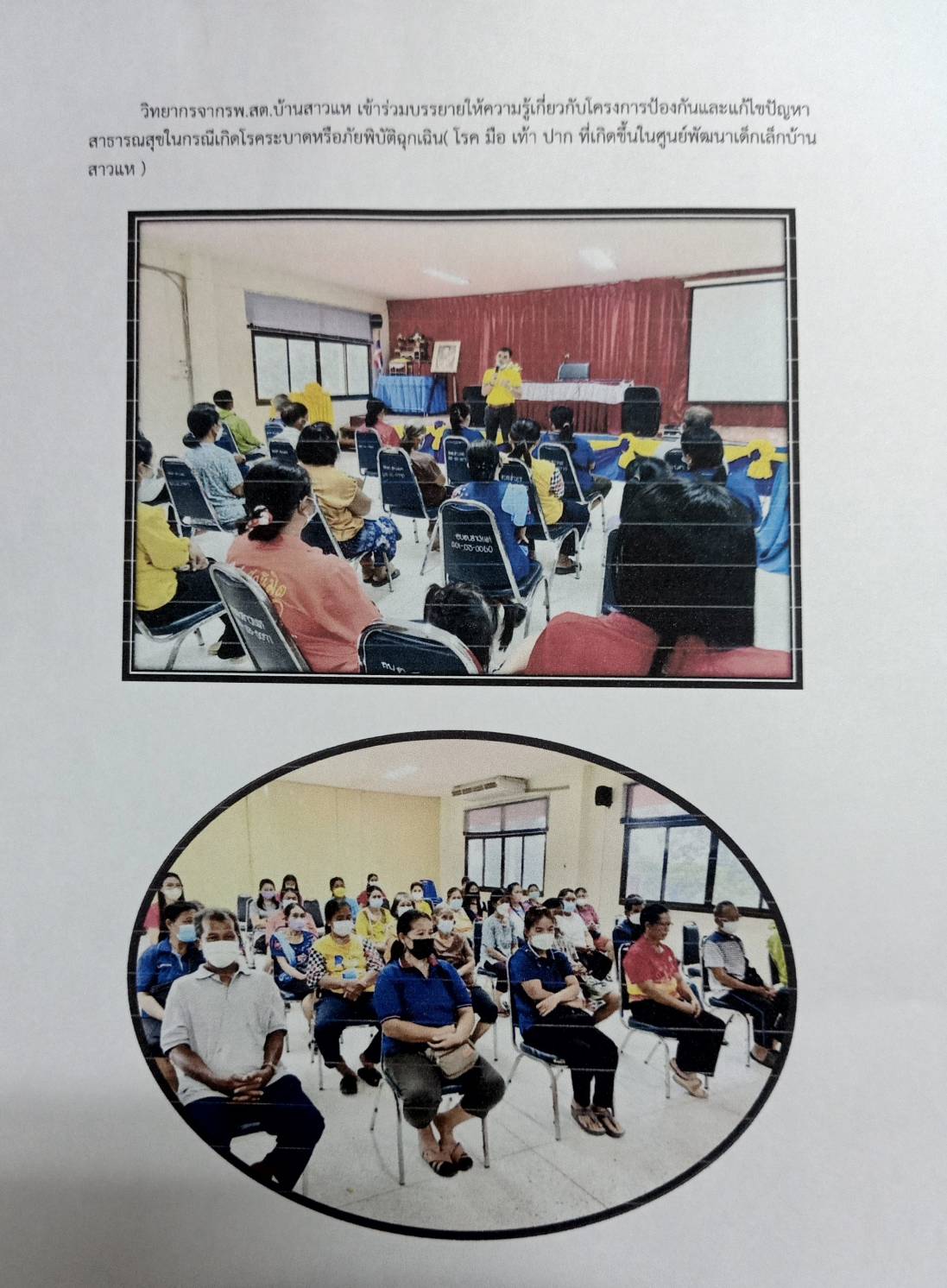 โครงการป้องกันและแก้ไขปัญหาสาธารณสุขในกรณีเกิดโรคระบาดหรือภัยพิบัติฉุกเฉิน (โรคมือเท้าปาก ที่เกิดขึ้นในศูนย์พัฒนาเด็กเล็กบ้านสาวแห)