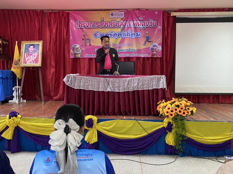 วันที่ 1 สิงหาคม 2568 เวลา 09.30 น. นายชนะชาญ ศรีปัญญา นายก อบต.สาวแห มอบหมายให้ นายพุททอง สุวรรณสุด รองนายก อบต.สาวแห เป็นประธานเปิดโครงการส่งเสริมสุขภาพผู้สูงวัย ชะลอข้อเข่าเสื่อม ณ ห้องประชุมองค์การบริหารส่วนตำบลสาวแห โดยกองสวัสดิการสังคม