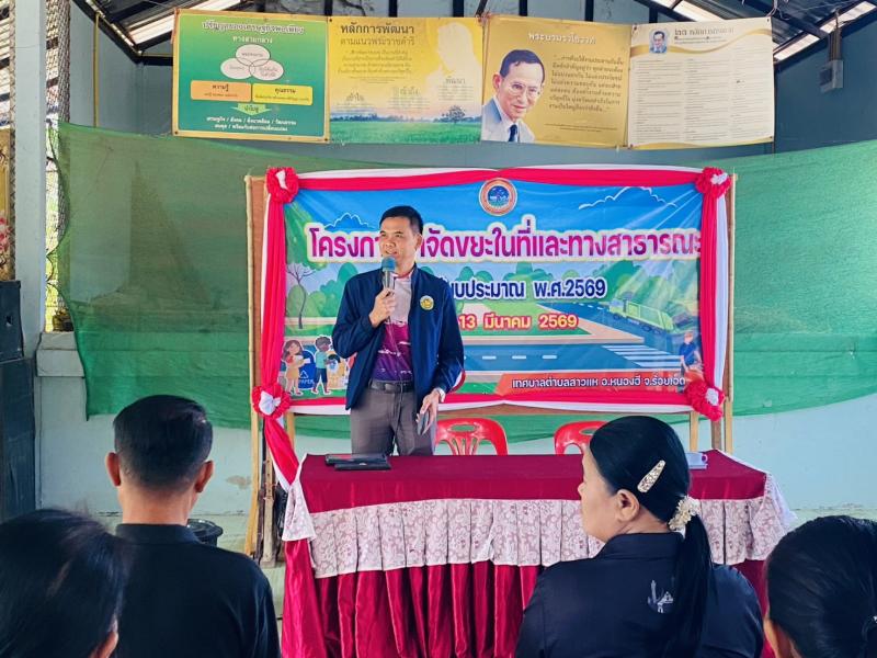 วันที่ 13 มีนาคม 2569 เวลา 09.30 น. นายปฏิการ เชื้อทอง ปลัดเทศบาล ปฏิบัติหน้าที่ นายกเทศมนตรีตำบลสาวแห เป็นประธานเปิดโครงการกำจัดขยะในที่และทางสาธารณะ ประจำปีงบประมาณ 2569 โดยมีวัตถุประสงค์หลักของโครงการฯ คือการปรับปรุงภูมิทัศน์ให้สะอาด สวยงาม และถูกสุขลักษณะ ลดปริมาณขยะตกค้าง ส่งเสริมการมีส่วนร่วมของประชาชนในการคัดแยกขยะตั้งแต่ต้นทางตามหลัก 3Rs (Reduce, Reuse, Recycle) ตลอดจนป้องกันแหล่งเพาะพันธุ์โรคและรักษาสิ่งแวดล้อม ณ ศาลาประชาคม หมู่ที่ 5 บ้านสาวแห ตำบลสาวแห อำเภอหนองฮี จังหวัดร้อยเอ็ด