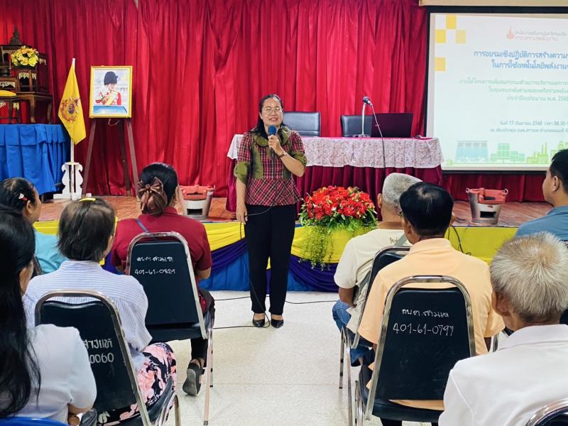 วันที่ 17 กันยายน 2568 เวลา 09.30 น. องค์การบริหารส่วนตำบลสาวแห ร่วมกับสำนักงานพลังงานจังหวัดร้อยเอ็ด ดำเนินโครงการจัดอบรมเชิงปฏิบัติการสร้างความรู้ ความเข้าใจในการใช้เทคโนโลยีพลังงานชุมชน ภายในต้โครงการเพิ่มสมรรถนะด้านการบริหารและจัดการพลังงานครบวงจรในชุมชนระดับตำบลและเครือข่ายพลังงานชุมชน ประจำปีงบประมาณ พ.ศ.2568 ให้กับประชาชนตำบลสาวแห ณ ห้องประชุมองค์การบริหารส่วนตำบลสาวแห