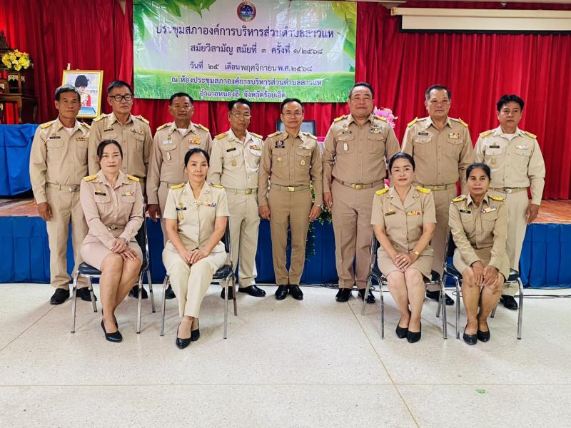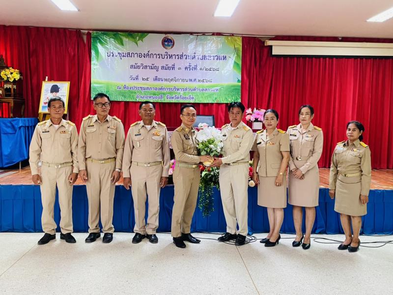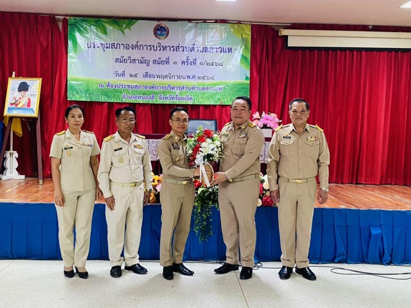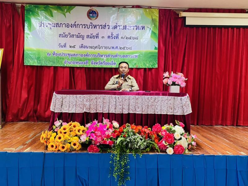วันที่ 25 พฤศจิกายน 2568 เวลา 09.30 น. สภาองค์การบริหารส่วนตำบลสาวแหประชุมสภา สมัยวิสามัญ สมัยที่ 3 ครั้งที่ 1 ประจำปี 2568 เรื่อง รายงานแสดงผลการปฏิบัติงานตามนโยบายที่ได้แถลงไว้ต่อสภาองค์การบริหารส่วนตำบลสาวแห ประจำปีงบประมาณ พ.ศ.2568 และเรื่องอื่นๆ ณ ห้องประชุมสภาองค์การบริหารส่วนตำบลสาวแห อ.หนองฮี จ.ร้อยเอ็ด และองค์การบริหารส่วนตำบลสาวแหรู้สึกเป็นเกียรติอย่างยิ่งที่นายอำเภอหนองฮี นายยศพงษ์ ทรงศิลป์ ได้ให้เกียรติมามอบแจกันให้กับทางสภาองค์การบริหารส่วนตำบลสาวแหและคณะผู้บริหาร วันที่ 25 พฤศจิกายน 2568 เวลา 09.30 น. สภาองค์การบริหารส่วนตำบลสาวแหประชุมสภา สมัยวิสามัญ สมัยที่ 3 ครั้งที่ 1 ประจำปี 2568 เรื่อง รายงานแสดงผลการปฏิบัติงานตามนโยบายที่ได้แถลงไว้ต่อสภาองค์การบริหารส่วนตำบลสาวแห ประจำปีงบประมาณ พ.ศ.2568 และเรื่องอื่นๆ ณ ห้องประชุมสภาองค์การบริหารส่วนตำบลสาวแห อ.หนองฮี จ.ร้อยเอ็ด และองค์การบริหารส่วนตำบลสาวแหรู้สึกเป็นเกียรติอย่างยิ่งที่นายอำเภอหนองฮี นายยศพงษ์ ทรงศิลป์ ได้ให้เกียรติมาพบปะและมอบดอกไม้ให้กับทางสภาองค์การบริหารส่วนตำบลสาวแหและคณะผู้บริหารก่อนครบวาระในครั้งนี้ด้วย