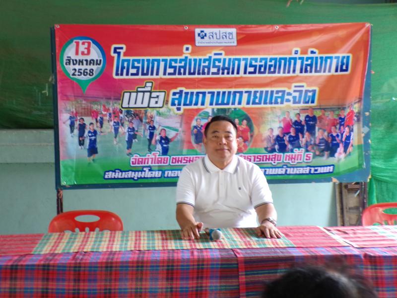 วันที่ 13 สิงหาคม 2568 เวลา 09.30 น. นายชนะชาญ ศรีปัญญา นายก อบต.สาวแห เป็นประธานเปิดโครงการส่งเสริมการออกกำลังกายเพื่อสุขภาพกายและจิต ประจำปีงบประมาณ พ.ศ.2568 ณ ศาลาประชาคม หมู่ที่ 5