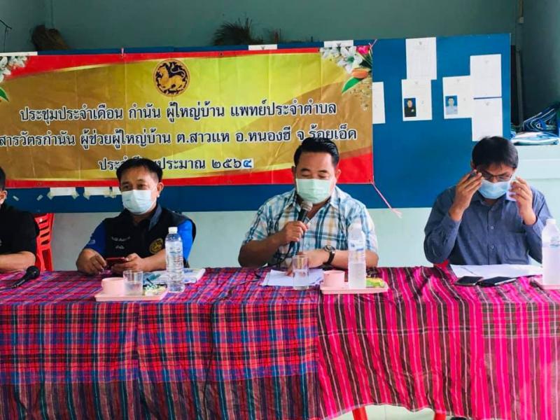 วันท15 ก.ค. 64 เวลา 09.30 น. นายชนะชาญ ศรีปัญญา นายกองค์การบริหารส่วนตำบลสาวแห เข้าร่วมประชุมประจำเดือน กำนัน ผู้ใหญ่บ้าน ร่วมกับว่าที่ ร.ต. ประสิทธิ์ ฉ่ำมณี นายอำเภอหนองฮี,หัวหน้าส่วนราชการ ผู้นำท้องที่ผู้นำท้องถิ่น,คณะกรรมการหมู่บ้านและประชาชนบ้านสาวแห หมู่5 เพื่อชี้แจงข้อราชการ มาตราการเฝ้าระวังป้องกันโควิด-19และรับฟังปัญหาความเดือดร้อนของประชาชน ณ ศาลาประชาคม หมู่ 5 บ้านสาวแห ตำบลสาวแห อำเภอหนองฮี จังหวัดร้อยเอ็ด