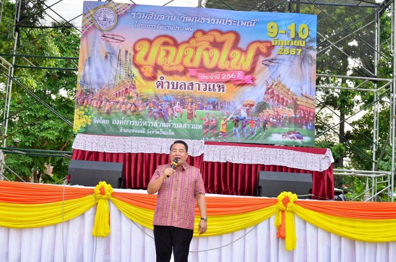 วันที่ 9 มิ.ย. 2567 เวลา 15.30 น. นายชนะชาญ ศรีปัญญา นายกองค์การบริหารส่วนตำบลสาวแห นำทีม คณะผู้บริหาร สมาชิกสภา อบต.สาวแห เจ้าหน้าที่พนักงาน อบต.สาวแห กล่าวรายงานวัตถุประสงค์การจัดงานฯ ในพิธีเปิดงานประเพณีบุญบั้งไฟตำบลสาวแห ประจำปี 2567 โดยได้รับเกียรติจากนางภัทรวดี สมทรัพย์ ผู้พิพากษาสมทบ ศาลเยาวชนและครอบครัวจังหวัดร้อยเอ็ด เป็นประธานในพิธีกล่าวเปิดงานประเพณีบุญบั้งไฟ ตำบลสาวแห ประจำปี 2567 ณ วัดบ้านสาวแห ต.สาวแห อ.หนองฮี จ.ร้อยเอ็ด
