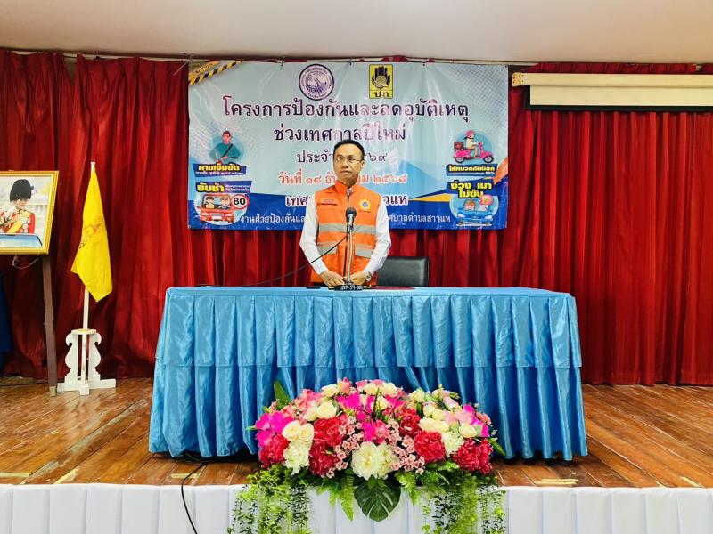 วันที่ 18 ธันวาคม 2568 เวลา 09.00 น. นายยศพงษ์ ทรงศิลป์ นายอำเภอหนองฮี เป็นประธานเปิดโครงการป้องกันและลดอุบัติเหตุช่วงเทศกาลปีใหม่ ประจำปีงบประมาณ พ.ศ.2569 โดยมีนายปฏิการ เชื้อทอง ปลัดเทศบาล ปฏิบัติหน้าที่ นายกเทศมนตรีตำบลสาวแห กล่าววัตถุประสงค์ของโครงการฯ ณ ห้องประชุมเทศบาลตำบลสาวแห อำเภอหนองฮี จังหวัดร้อยเอ็ด