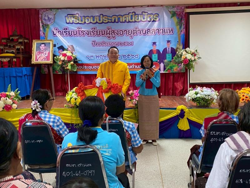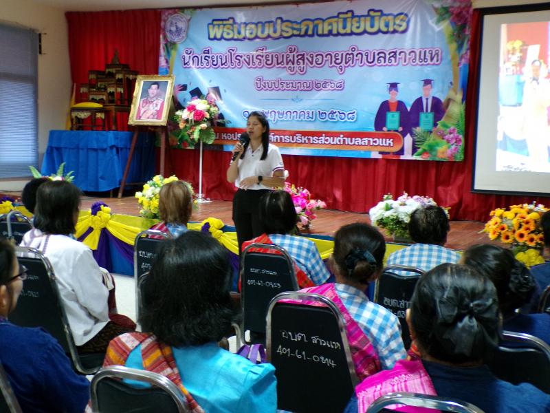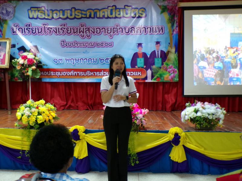 วันที่ 13 พฤษภาคม 2568 เวลา 09.00 น. องค์การบริหารส่วนตำบลสาวแห นำโดยนายชนะชาญ ศรีปัญญา นายก อบต.สาวแห เป็นประธานในพิธีมอบประกาศนียบัตร นักเรียนผู้สูงอายุตำบลสาวแห ประจำปีงบประมาณ พ.ศ.2568 ณ ห้องประชุมองค์การบริหารส่วนตำบลสาวแห