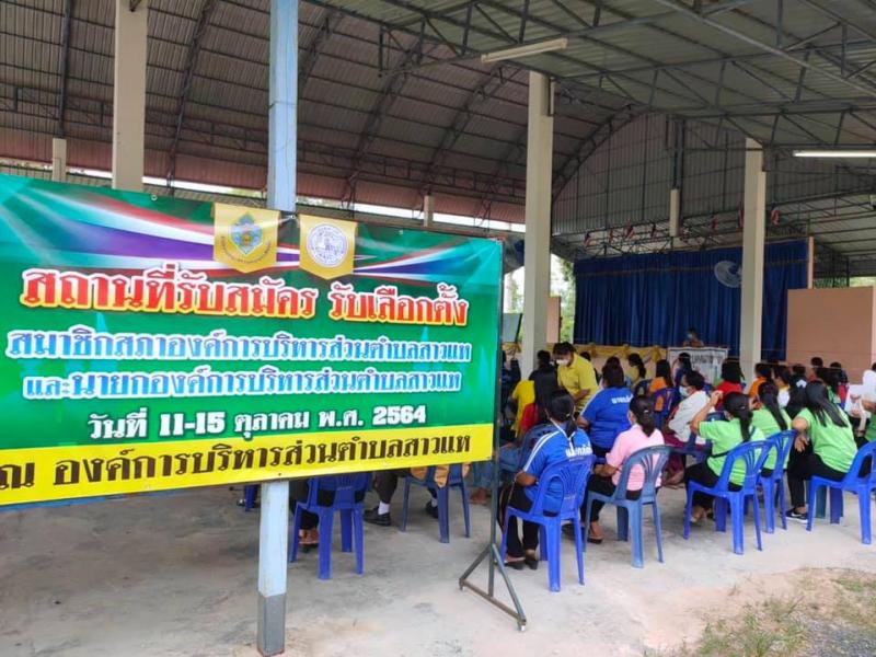 บรรยากาศรับสมัครการเลือกตั้งสมาชิกสภาองค์การบริหารส่วนตำบลสาวแห และนายกองค์การบริหารส่วนตำบลสาวแห วันที่ 11 ตุลาคม 2564 ณ อาคารอเนกประสงค์องค์การบริหารส่วนตำบลสาวแห