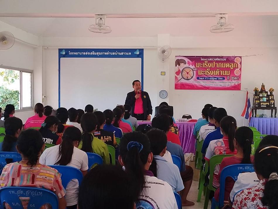 วันที่ 5 ก.ค. 2567 นายกชนะชาญ ศรีปัญญา ประธานกองทุนหลักประกันสุขภาพตำบลสาวแห พร้อมคณะกรรมการทุกท่านร่วมเปิดงาน โครงการมะเร็งปากมดลูกและมะเร็งเต้านม ณ โรงพยาบาลส่งเสริมสุขภาพตำบลสาวแห [5 กรกฎาคม 2567]